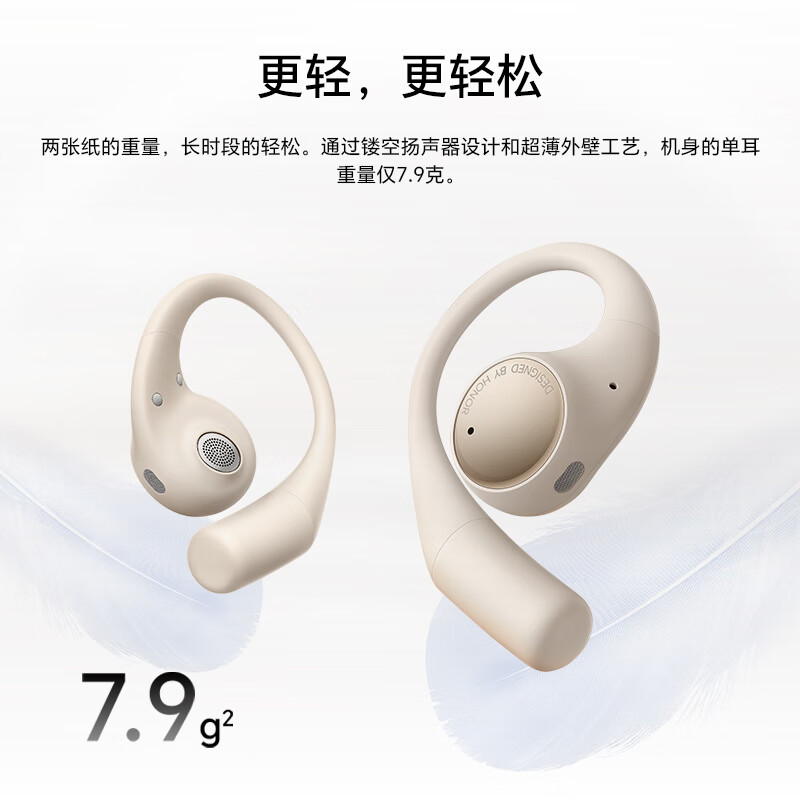 IT之家 7 月 2 日消息,荣耀 Earbuds 开放式耳机正式发布,作为行业首款通过 SGS 亲肤友好金标认证耳机,单耳重量 7.9g,对眼镜用户友好,不与镜腿打架,售价 699 元,国补后 594.15 元。
