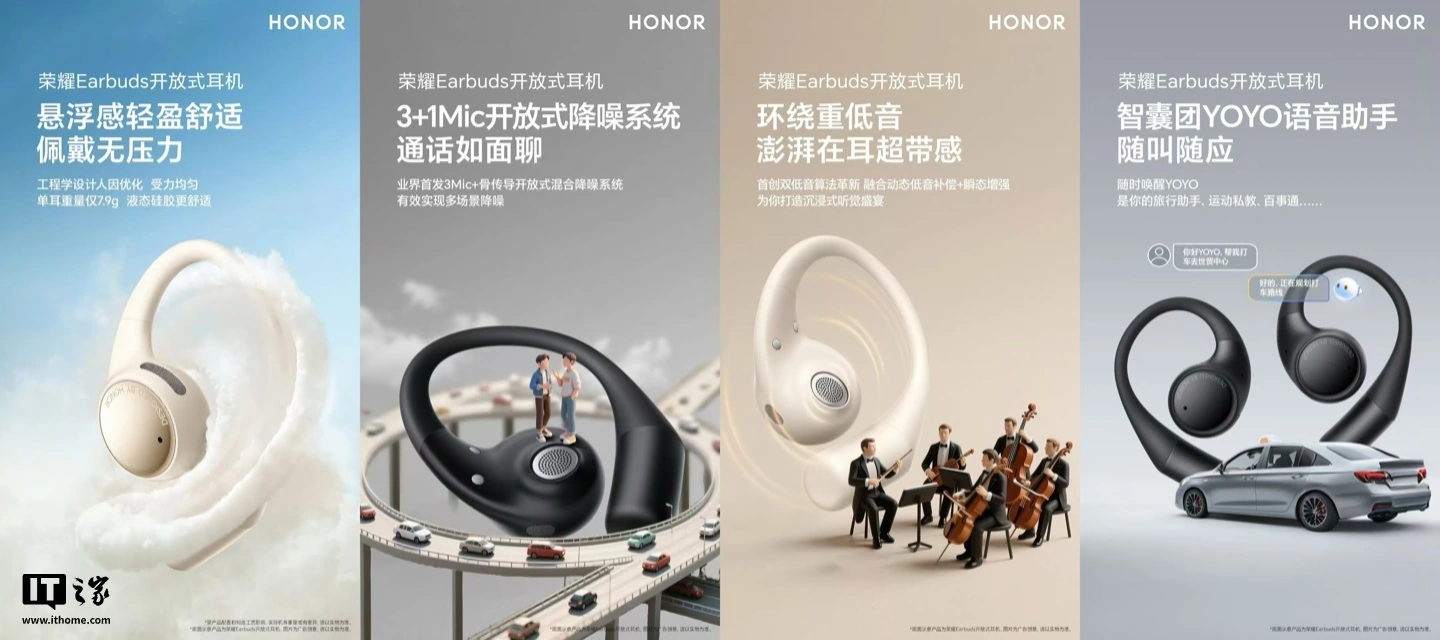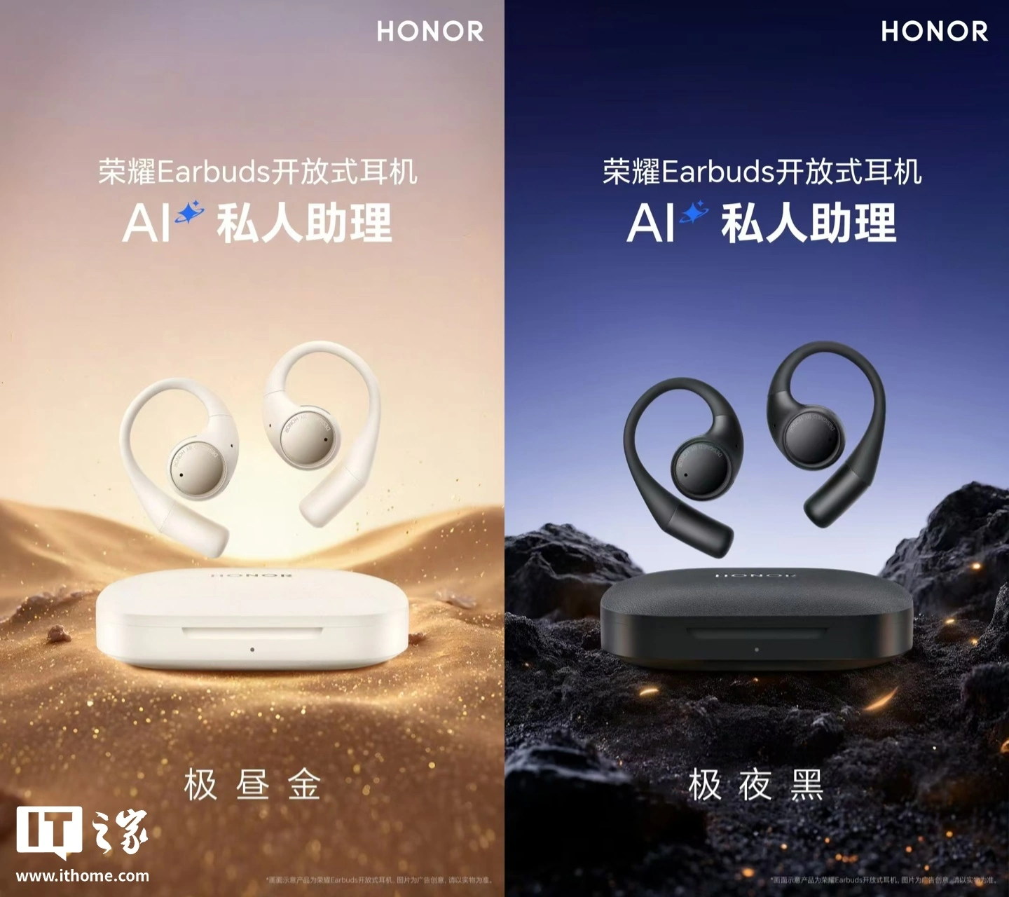 行业首发 3+1 麦开放式降噪:荣耀 Earbuds 开放式耳机发布,699 元